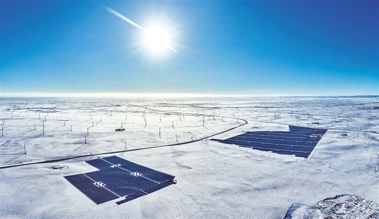 1月7日,航拍包头市达尔罕茂明安联合旗草原上的风力发电机和光伏发电设备。2025年,内蒙古新增新能源装机3500万千瓦,新能源总装机达到1.7亿千瓦以上,其中,风电装机在全国率先突破1亿千瓦。新能源发电量2700亿度,发电量连续10余年位居全国第一,外送绿电900亿度、同比增长40%以上。本报记者 孟和朝鲁 摄