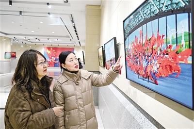 1月8日,观众在呼和浩特市文化馆参观摄影作品。当日,为展现内蒙古各族人民团结奋斗、同心共筑中国梦的生动实践与时代风貌,由呼和浩特市文化旅游广电局主办的“群星璀璨”·民族共“镜”筑同心主题摄影展开展,展期至2月28日。展览精选百余幅本土摄影家与摄影爱好者的作品,以镜头定格各族人民手足相亲、守望相助的精彩瞬间,让观众深切感受到民族团结在日常生活中的深厚底蕴。 本报记者 王磊 摄