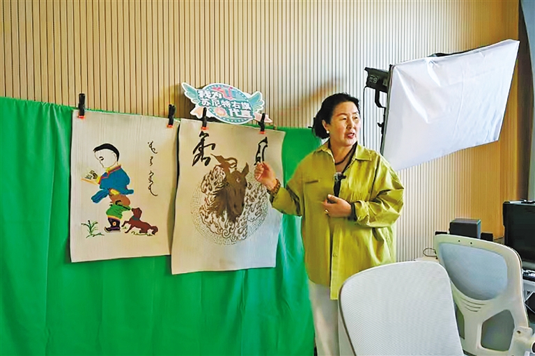 随着网络平台的广泛应用,乌兰图雅也把精力投入到毡绣技艺的推广上。最开始,她还不熟悉如何在网络上教学,粉丝数量较少,直播时间也相对较短。