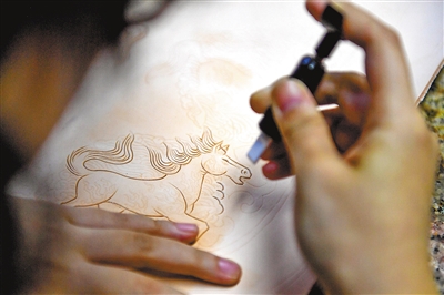 2024年,清珂尔的作品《代马依风》在第三届工艺美术文创设计大赛中斩获奖项。清珂尔介绍:“创作这幅作品时,苏老师让我在马身上加一点绿色,成了点睛之笔。”苏力德解释:“皮雕画中的骏马形象是呼伦贝尔草原的马,草原的颜色会反光在马毛上。”