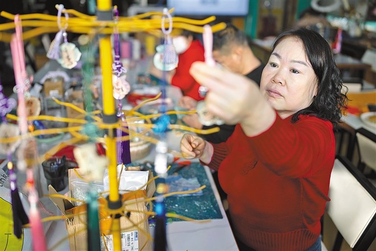 新春将至,呼和浩特市赛罕区科尔沁路街道“美丽工坊”内暖意融融,指导老师正带领着残疾人学员们加紧制作各类手工艺品,赶制新年订单。