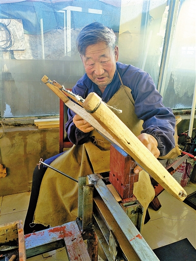 工作室里又响起了有规律的敲击声,凿刀起落间,木屑飞舞,一块坚硬的木头在老人手中正经历着化茧为蝶的蜕变。