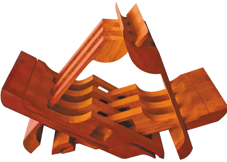 记者慕名来到景宏的工作室,老人热情地搬出一块二十多斤重、厚墩墩的长方形紫檀木,像小朋友玩变形金刚似的,三下两下掰成一把椅子,招呼道:“尽情坐,很结实,管保稳当。”老人又随手拿起一件不到一拃长的绿檀将军案,双手一边玩魔方似的摆弄,一边说:“制作鲁班凳时得根据手中木头的薄厚、长短,计算出各部位的尺寸变化,再在木头上画出底稿。”