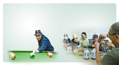 1月19日,通辽市科左后旗养老院运动馆内,几位老人正在进行台球比赛,“选手”聚精会神,“观众”鼓掌叫好,一副其乐融融的样子。