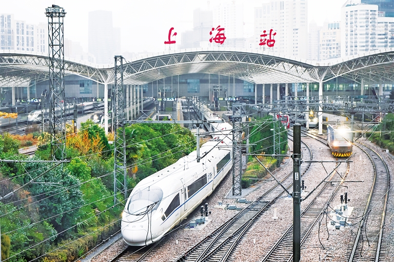 1月26日,列车驶出上海站。1月26日零时起,全国铁路实行新的列车运行图。调图后,全国铁路安排图定旅客列车12130列,开行货物列车23748列,全国铁路客货运输能力和效率进一步提升,运输产品供给持续优化。 新华社记者 王翔 摄