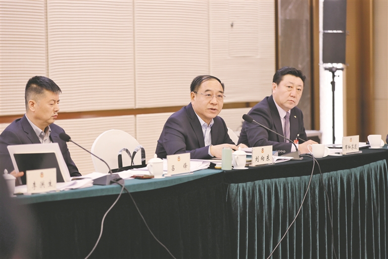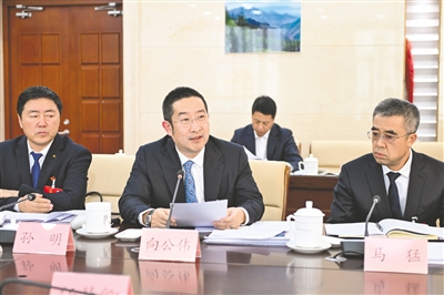 2月6日,兴安盟代表团向公伟(中)代表建议,基层法检两院以法治力量更加精准护航民营经济,以法治化营商环境助力民营企业稳健发展、做大做强。 本报记者 王晓博 摄