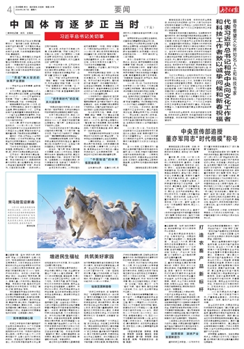 代表习近平总书记和党中央向文化工作者 和科技工作者致以诚挚问候和新春祝福