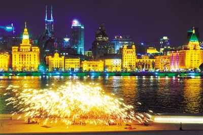 非遗“打铁花”表演 点亮上海