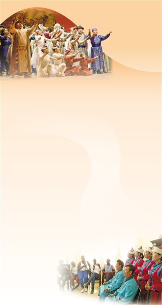 歌舞剧《古如歌》演出剧照。 留学生在杭锦旗独贵塔拉镇交流学习古如歌。