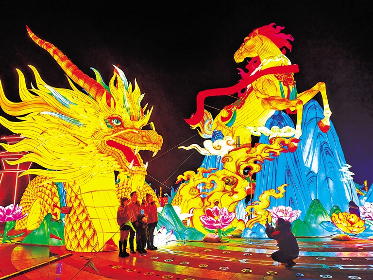 连日来,“龙腾马跃耀乌海”2026年新春主题灯展吸引人们前来打卡。乌海市今年的新春灯展以“一区一景、一景一韵”为特色,串联起四个区域,各种造型的主题花灯各具意趣,为人们带来兼具民俗韵味与视觉美感的节日文旅盛宴。本报记者 郝飚 摄