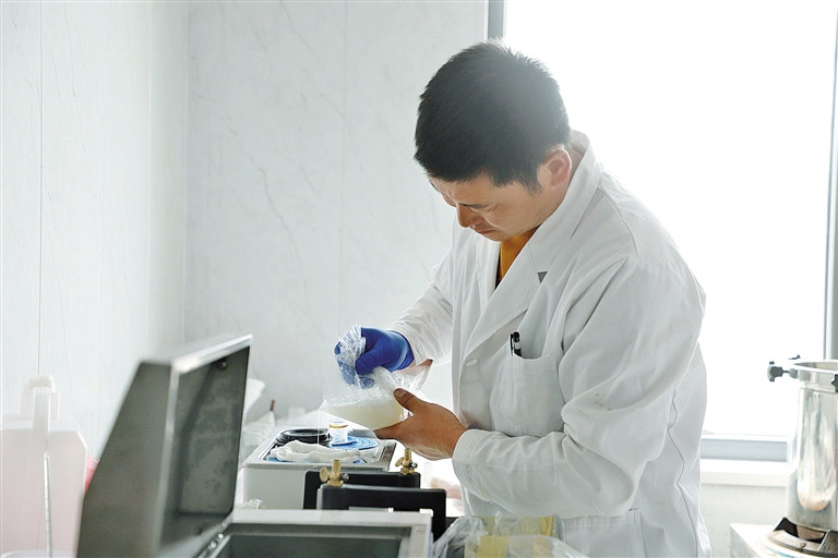 从家庭作坊到标准化生产,那木吉拉跨过了技艺转化的第一道坎。他多次外出考察学习现代食品加工技术,引进专业检测与温控设备,建成300平方米标准化生产车间,将传统酿制技艺与现代品控结合,确保每一瓶酸马奶风味醇、品质稳定。2025年,基地成功拿下SC食品生产许可证,实现合规化、标准化生产,让非遗技艺有了现代产业“身份证”。
