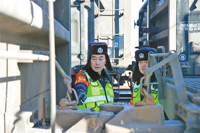 在内蒙古、甘肃、新疆三省区交界地带的“黑戈壁”上,我国“一带一路”倡议的重点工程——临哈铁路蜿蜒穿行,连通三北、远接中亚,成为丝绸之路经济带在祖国北疆延伸而出的一条崭新通途。呼和浩特铁路公安局包头公安处马鬃山站派出所民警驻守于这片“生命禁区”,肩负起辖区10个火车站和365.1公里线路的安全守护任务。为确保这条“钢铁动脉”的平安畅通,马鬃山站派出所与站区铁路单位建立协作机制,推动警企联动,共同强化站区治理和安全防范,用实际行动践行铁路公安护航平安的职责与担当。
