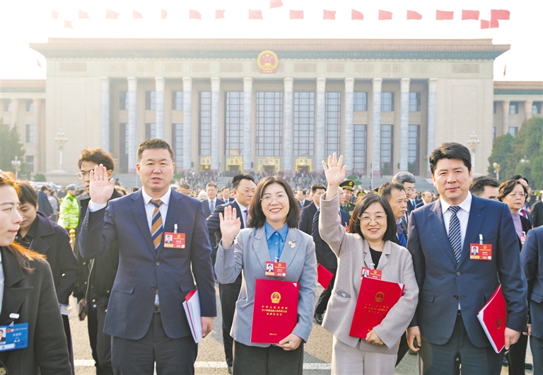 | 3月12日,十四届全国人大四次会议在北京人民大会堂闭幕。内蒙古代表团代表走出会场,纷纷表示将认真贯彻落实大会精神,牢记使命、履职尽责,凝心聚力推动高质量发展,为书写中国式现代化内蒙古新篇章贡献智慧和力量。本报记者 马建兵 摄 |