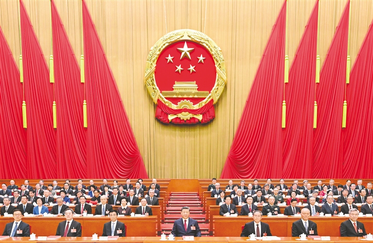 赵乐际说,我们要立足人大职能职责,坚持党的领导、人民当家作主、依法治国有机统一,践行全过程人民民主,坚持好、完善好、运行好人民代表大会制度,切实发挥国家根本政治制度优势,认真履行宪法法律赋予的职责,为实现“十五五”目标任务提供法治保障;人大代表要忠实代表人民利益和意志,依法履职尽责,密切联系群众,在本职岗位上建功立业、作出贡献。