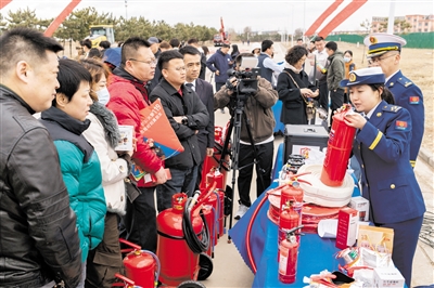 3月13日,在呼和浩特市脑包物流中心,消防监督员为市民讲解辨别真伪消防器材常识。当日,呼和浩特市消防救援支队联合市场监管、住建、公安等部门开展“3·15”消防产品知识科普教育活动,3000件假冒伪劣灭火器、消防水带、应急照明灯具被集中销毁。现场还进行了各类科普讲解,引导群众提高消防安全意识。