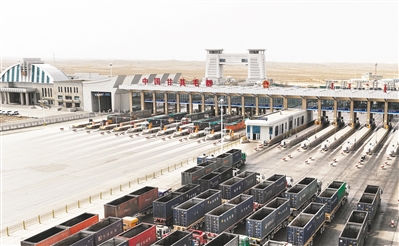 3月14日,货车在甘其毛都口岸货运通道有序通关。今年截至3月13日口岸闭关,甘其毛都口岸进出口货物1004.27万吨,进出口货运量较去年提前近一个月突破1000万吨,同比增长45.54%。本报记者 孟和朝鲁 摄