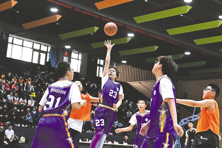 3月27日,呼和浩特市赛罕区首届中小学篮球比赛小学组总决赛激情开赛,赛事为期4天,共有来自16所学校的23支队伍参加男子、女子组比赛。近年来,赛罕区始终坚持“五育并举”育人理念,助力学生全面发展。本报记者 王晓博 摄