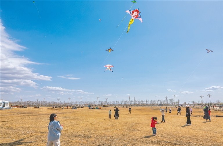 3月29日,市民游客在呼和浩特市新城区敕勒川草原放风筝。由呼和浩特市文化旅游广电局推出的“放飞春天·2026呼和浩特风筝艺术系列活动”,于3月20日至4月6日精彩上演。本次活动引入60余组巨型软体风筝,为市民和游客呈现一场兼具文化底蕴、亲子趣味、浪漫活力的春日文旅盛宴。 本报记者 王磊 摄