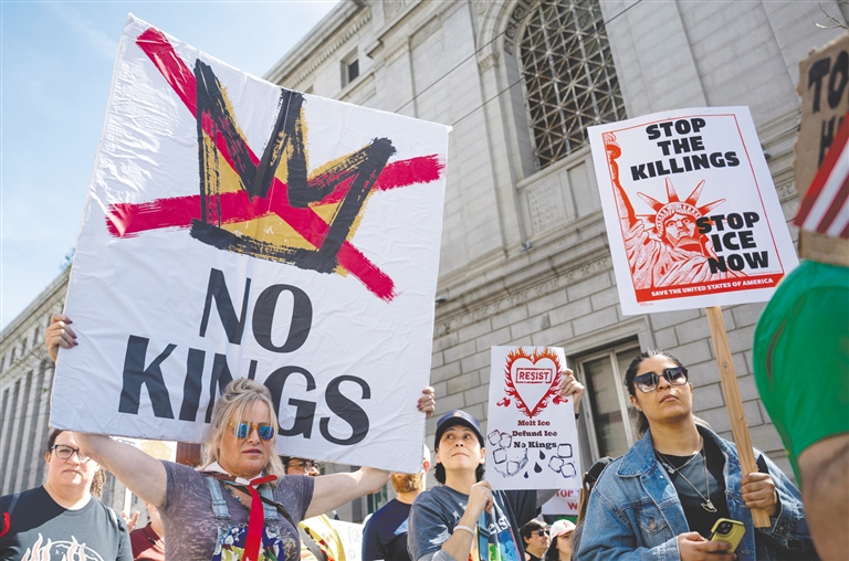 3月28日,人们在美国加利福尼亚州旧金山参加“不要国王”抗议活动。美国多地3月28日爆发示威抗议活动。数百万民众走上街头,针对特朗普政府的移民执法等一系列政策表达不满,呼吁结束对伊朗的军事打击。此次抗议活动以“不要国王”为主题。组织方预计,当天全美共举办超过3100场抗议活动,覆盖50个州,以及华盛顿、纽约、洛杉矶等主要城市。 新华社发