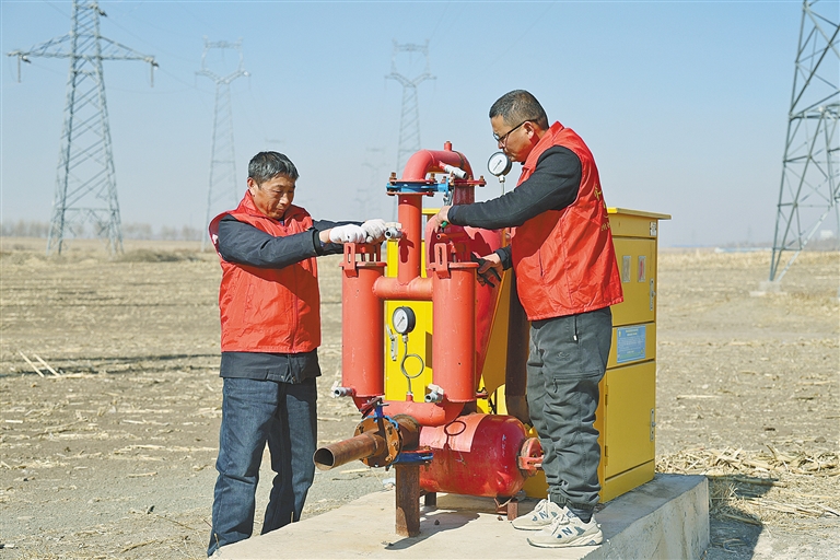 在不远处的高标准农田里,“农机哥哥”志愿服务队正对机井水泵、出水栓等设施开展“体检”。前进村党支部副书记刘百库介绍:“全村高标准农田覆盖率达85%,我们提前检修设施,确保春耕用水无忧。”目前,全镇9000余台拖拉机、1.1万余台配套机具检修率已超过八成,陆续投入生产。