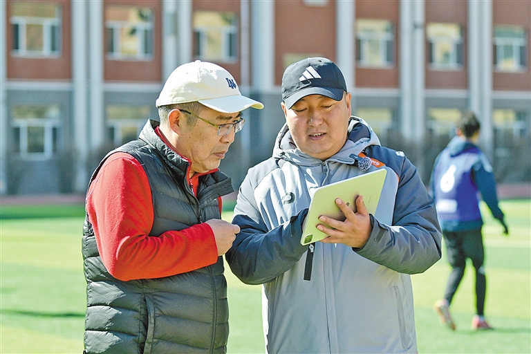 “注意跑位!把传球成功率打出来!”春日暖阳下,呼和浩特市现代信息技术学校的绿茵场上一片火热。少年们奔跑、传切、射门,主教练常锡原一边盯着平板电脑上的实时训练数据,一边高声指挥。