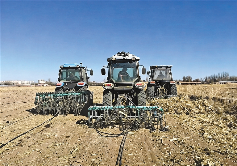 春耕在即,巴彦淖尔市磴口县的农田里,残膜回收机正忙着作业,为土地清除“白色污染”。2025年,该市聚乙烯地膜覆膜面积达1032.52万亩,地膜使用量为3.31万吨。残留地膜影响作物生长、污染耕地,全面回收刻不容缓。