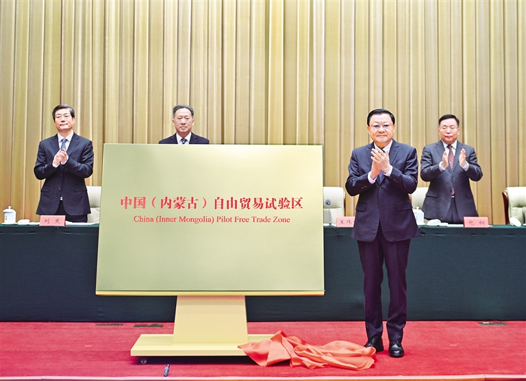 王伟中在讲话时指出,设立中国(内蒙古)自由贸易试验区,是党中央、国务院作出的重大决策,是内蒙古改革开放和高质量发展进程中具有里程碑意义的大事,充分体现了习近平总书记对内蒙古的高度重视和殷切期望,彰显了党中央进一步全面深化改革、推进高水平对外开放、推动高质量发展的决心意志。我们要牢记重托、感恩奋进,认真贯彻党的二十大和二十届历次全会精神,深入学习贯彻习近平总书记关于对外开放的重要论述和对内蒙古系列重要讲话重要指示精神,完整准确全面贯彻新发展理念,以铸牢中华民族共同体意识为主线,凝聚全区之力高标准高质量推进自由贸易试验区建设,进一步全面深化改革、扩大高水平对外开放,加快建设我国向北开放重要桥头堡、深度融入国内国际双循环,努力将中国(内蒙古)自由贸易试验区建设成为新时代改革开放新高地,为国家深化改革开放和高质量发展大局作出更多贡献,以实际行动和成效坚定拥护“两个确立”、坚决做到“两个维护”。
