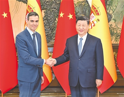 习近平强调,当今世界乱象丛生,面临公理和强权的较量。如何对待国际法和国际秩序,反映的是一国的世界观、秩序观、价值观和责任观。中国和西班牙都是有原则、讲道义的国家,应该加强沟通、巩固互信、紧密合作,反对世界倒退回丛林法则,共同捍卫真正的多边主义,维护以联合国为核心的国际体系和以国际法为基础的国际秩序,推动实现平等有序的世界多极化、普惠包容的经济全球化,推动构建人类命运共同体。