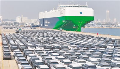 4月14日,国产汽车在山东港口烟台港等待装船出口(无人机照片)。4月14日,海关总署发布数据显示,2026年一季度我国货物贸易进出口总值11.84万亿元,同比增长15%,季度规模首超11万亿元的同时,季度增速创近5年最高。 新华社发