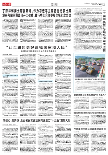 丁薛祥访问土库曼斯坦、作为习近平主席特别代表出席 复兴气田四期项目开工仪式、举行中土合作委员会第七次会议