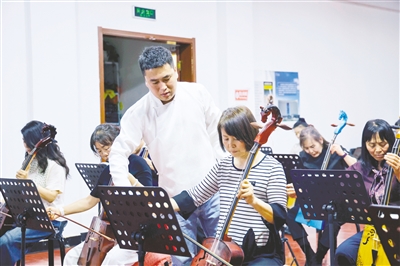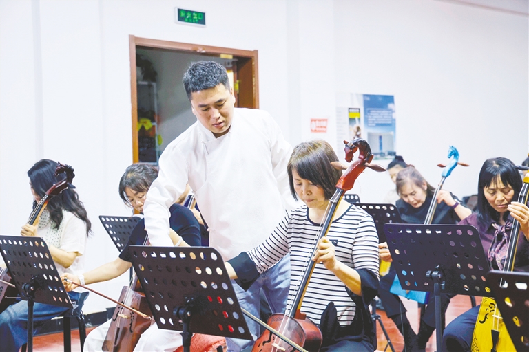 4月19日,在兴安盟突泉县第四期马头琴公益培训班上,马头琴爱好者跟随乌兰牧骑队员学习马头琴。突泉县马头琴公益培训班自2025年启动以来,已累计培训学员近百人,成为传承马头琴技艺、丰富群众精神文化生活的重要平台。本报记者 王磊 摄