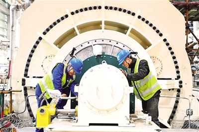 4月21日,工人在准大电厂2×1000MW煤电一体化扩建项目主厂房区安装设备。该项目位于鄂尔多斯市准格尔经济开发区大路产业园,总投资约78.65亿元,投产后可实现年发电量100亿度,工业供汽776万吨,年营业收入41.9亿元,将为能源结构优化和可持续发展提供支撑。本报记者 王晓博 摄