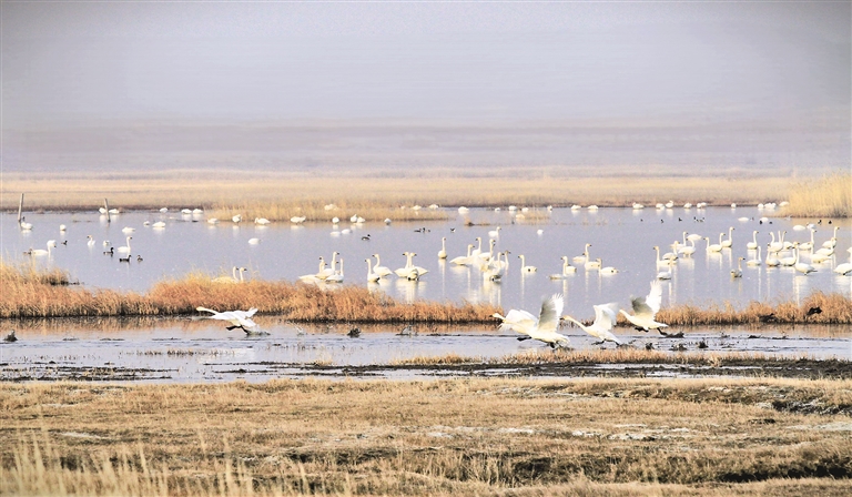 4月20日,数万只候鸟如约而至,大天鹅、白枕鹤、鸿雁等生灵翔集呼伦湖面。作为东北亚—澳大利亚迁徙关键驿站,呼伦湖国家级自然保护区以巡护执法、科技监测、伤病救护及全民引导筑牢生态保护屏障。保护区已记录鸟类346种,其中国家重点保护85种,鸿雁种群连续3年超2万只。本报记者 李新军 摄