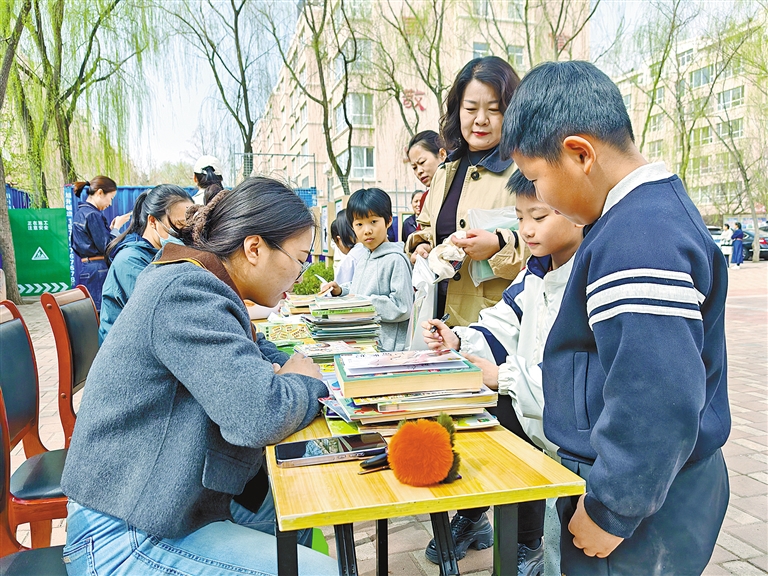 4月18日,松山区玉龙街道长安社区联合松山区第六小学开展“书香润万家 阅读启新程”图书漂流主题活动,辖区居民与学校学生踊跃捐赠闲置的正版图书,让大家可以凭换书券自由置换,实现阅读资源的快速共享。“把家里闲置的书分享出来,能让书籍发挥更大价值,也能在交换中交流阅读心得。”长安社区居民吴丙杰说。