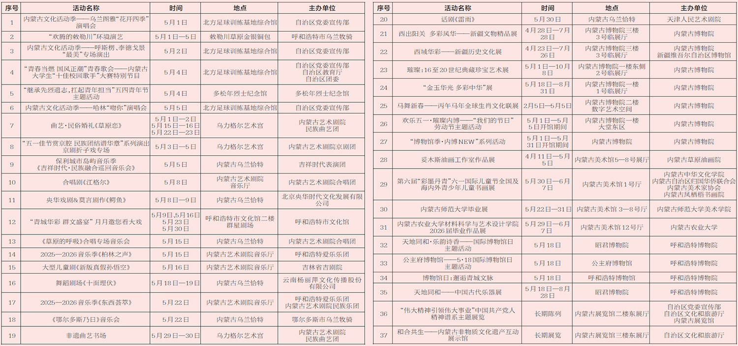 2026年5月呼和浩特地区重点文化文艺活动安排