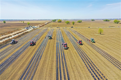 今年,内蒙古启动“主要粮油作物大面积单产提升建设年”行动,构建“1+5+5+N”工作体系(1个大面积单产提升建设年总方案、5项重点任务、5项管理制度、N个配套方案),确保各项工作扎实推进。突出良田、良种、良机、良技“四良”融合,开展“424”矩阵式(重点支持40个支撑县筑牢基础、20个重点示范县打造标杆、4个三级联创标杆县引领突破)包联攻坚,健全农业科技保障体系。当前,内蒙古已进入春播高峰期,粮食播种意向面积在1亿亩以上。