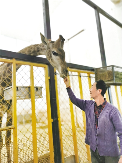 2岁的长颈鹿“丽丽”是由动物园人工饲养长大的,见到饲养员就像见到了亲人,只见它快步走上前来,低垂眼睛弯下脖子,邀请饲养员抚摸它的脸。“园内的动物营养师们会根据季节变化,适时给动物调整食物种类,适量增加饲料量,保证动物有充足的能量来抵御寒冷。”饲养员告诉记者,除了草料外,饲养员还给长颈鹿准备了胡萝卜、香蕉等可口食物,其他场馆的动物也是如此。