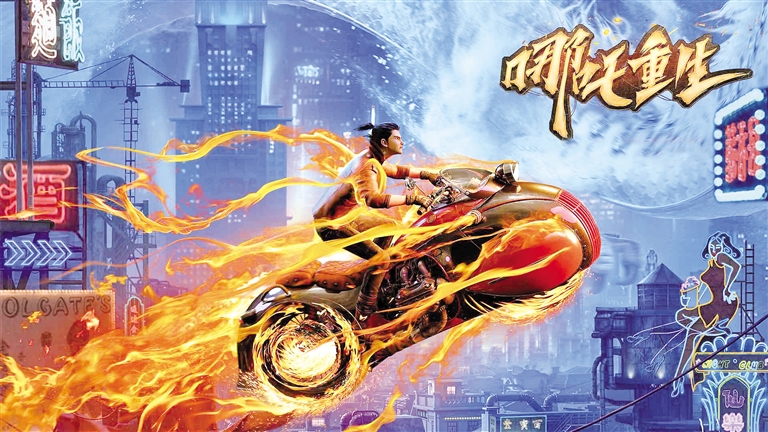 而在2021年版《新神榜:哪吒重生》的先导片花中,可以感受到一个中国超级英雄的身影。在高速的动作镜头和炫目特效下,皮衣皮靴“酷”感十足的哪吒展示了他敏捷的身手和非凡的战斗力。加上画面中的钢铁城市、摩托飞艇、机器机甲……从美术设计到世界观架构,充斥着由二次元、科幻、游戏、网络等共同构筑的景观,皆是年轻观众所熟悉的流行文化元素。