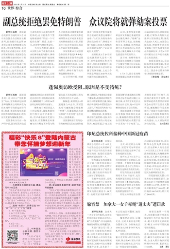 副总统拒绝罢免特朗普 众议院将就弹劾案投票