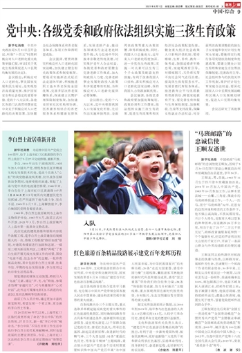 党中央:各级党委和政府依法组织实施三孩生育政策