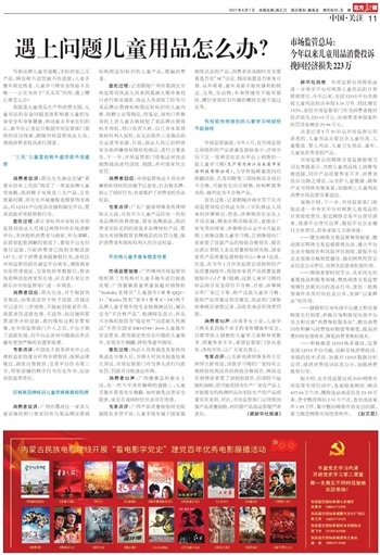 市场监管总局: 今年以来儿童用品消费投诉 挽回经济损失223万