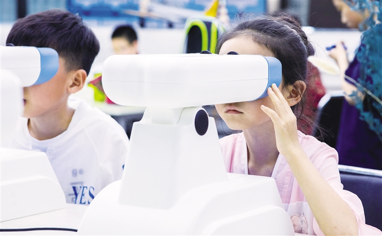 6月2日,小朋友们在接受视力检查。6月6日是第26个全国爱眼日,今年的活动主题为“关注普遍的眼健康”。6月2日,呼和浩特市玉泉区少年宫举行了“公益爱眼屋”活动,为学生提供专业视力健康检查,精准评估、预警,并提供近视防控的指导方案、假性近视的矫正和弱视恢复性训练等。通过早发现、早防控,使未近视的孩子延缓近视发生,让孩子们拥有光明的未来。