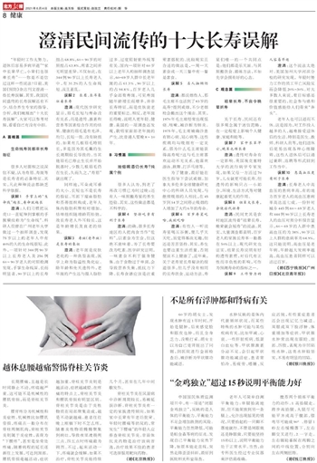 很多人认为,到老了再改习惯已为时过晚;还有人一味照搬寿星的养生经验。其实,这些做法都是不科学的。