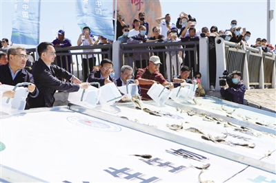 6月6日,内蒙古自治区农牧厅与呼伦贝尔市政府在呼伦湖联合开展全国“放鱼日”水生生物增殖放流活动。当日,全区11个盟市14个放流点同时开展增殖放流活动,共放流各类鱼类苗种2292万尾,正式拉开2021年增殖放流的序幕。按计划,全年内蒙古将放流各类鱼类苗种7900万尾。据了解,自2006年《中国水生生物资源养护行动纲要》实施以来,内蒙古已连续15年开展水生生物增殖放流,通过“以鱼控草”“以鱼抑藻”“以鱼净水”等生态渔业方式,有效养护水生生物资源,改善水域生态环境,为生态保护修复做出了积极贡献。