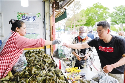 6月9日,首府市民在一家传统手工粽子店购买粽子。“彩线轻缠红玉臂,小符斜挂绿云鬟。”一年一度的端午节又快到了,挂艾草、缠彩线、吃粽子,这些传统习俗深受我国人民欢迎。随着端午临近,呼和浩特市的传统手工粽子又火了起来,吸引众多市民前来购买。