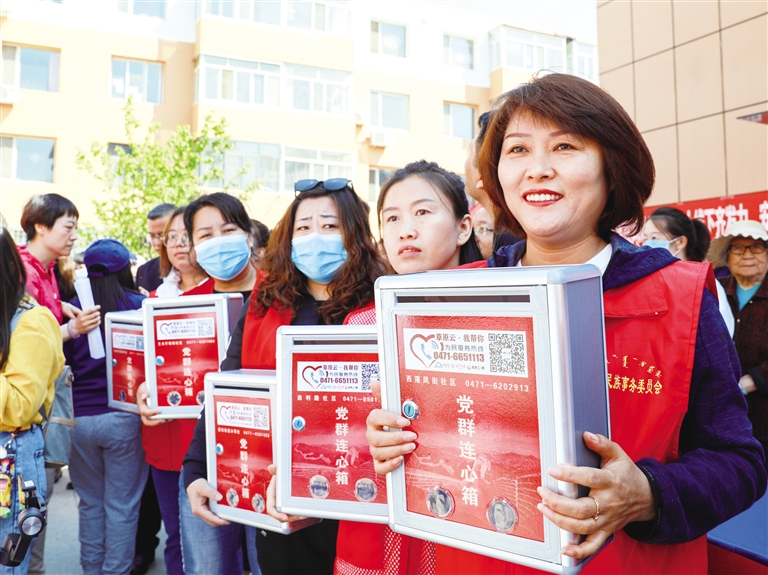 6月10日上午,内蒙古日报社联合呼和浩特市新城区西街街道办事处、艺术厅北街社区开展了草原云“我帮你”走进艺术厅北街社区暨我为群众办实事主题活动。内蒙古日报社现场为新城区西街街道办事处及所辖6个社区发放了“党群连心箱”。由燃气、电力、美容美发学校、凯蒙中医医院、教育咨询等多家单位组成的爱心志愿服务队入户上门,为居民送去形式多样的贴心服务,用心用情用力解决居民的困难事、烦心事。(相关报道见8~9版) 摄影/北方新报正北方网记者 牛天甲