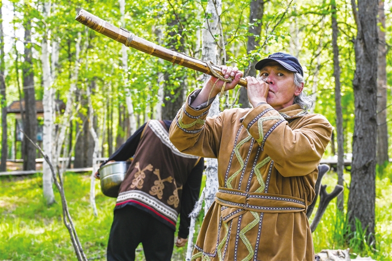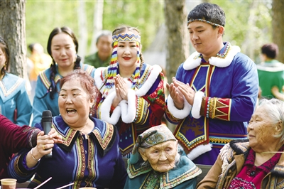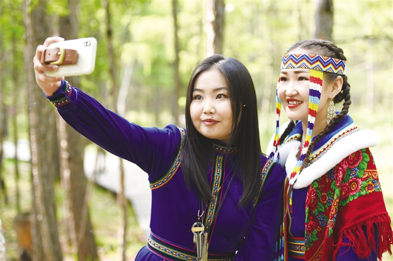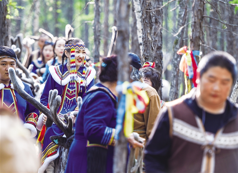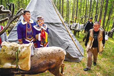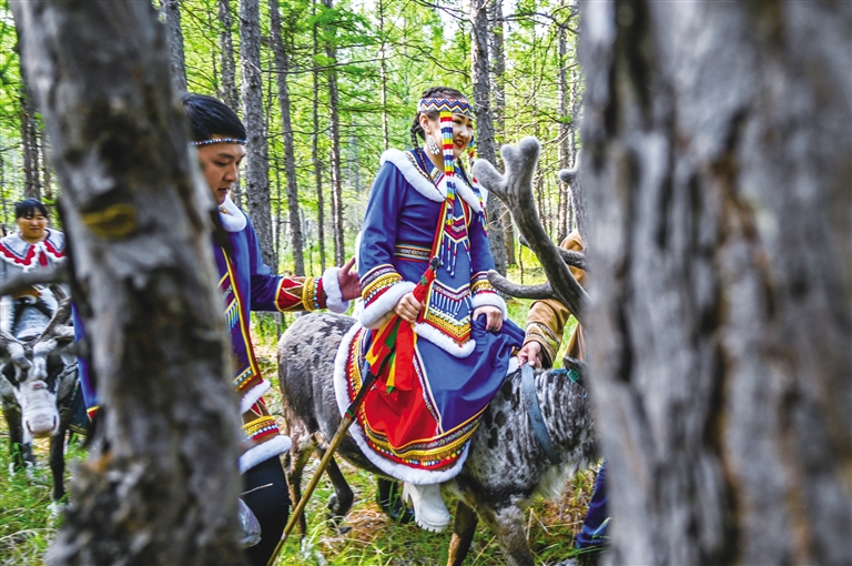 敖鲁古雅鄂温克使鹿部落现存200余人,2003年,他们从山林中搬迁到根河市定居,但是驯鹿养殖、民族手工等传统文化依然较为完整地保留下来。 摄影/新华社记者 连 振 刘 磊