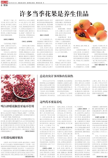 中医认为,金银花有宣散风热、保护血管、消炎杀菌的功效。进入夏天后,有些人出现特别怕热、上火溃疡、口渴咽干、手足心热、便秘等不适,建议这类人群可用金银花制作清心祛暑饮来调理。具体做法:取淡竹叶6—10克,金银花6—8克,莲子心5克,桑葚10克,甘草5克,加入沸水冲泡,放置微温时饮用即可。夏季血压偏高的人可用金银花、菊花、葛花各10克,做成“三花降压饮”,经常泡水喝,可帮助稳定血压、清热凉血、保护血管。