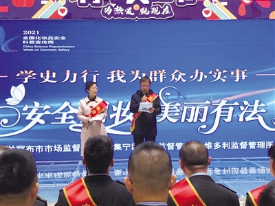 5月24日,内蒙古自治区“2021年全国化妆品安全科普宣传周”启动仪式在呼和浩特市万达广场启动,自治区药监局、呼和浩特市市场监管局、赛罕区政府及市场监管局相关领导出席启动仪式,化妆品监管人员、生产经营企业、注册和备案人、新闻媒体等200多人参加了启动仪式。各级药品监管部门分别在各地同时段举办启动仪式。5月25日,自治区药物警戒中心、各级药品监管部门分别在各地同时组织开展“5·25爱肤日”活动。宣传周活动通过展板、宣传册、科普宣传片、系列短视频及媒体访谈等形式,就如何正确认识化妆品功效、选购儿童化妆品注意事项、化妆品安全使用等内容进行宣传;组织全区各级化妆品监管人员、生产经营企业、注册和备案人参加国家药监局公益网络培训;举办实验室、生产企业开放日活动和产业发展座谈会,邀请化妆品生产经营企业、监管人员、公众及媒体参观自治区药品检验研究院和内蒙古宇航人化妆品有限公司,围绕《化妆品监督管理条例》等政策法规,研讨化妆品监管和技术创新,推动全区化妆品产业发展;各级药品监管部门分别在各地面向消费者开展公益讲座进校园、进社区,为消费者解答化妆品常识、使用误区。在自治区药监局官网设置“2021年全国化妆品安全科普宣传周”专栏,持续发布化妆品相关法规、科普短视频和安全用妆知识,利用“内蒙古药闻”微信公众号、科普宣传微信群推送自治区、各盟市活动情况。