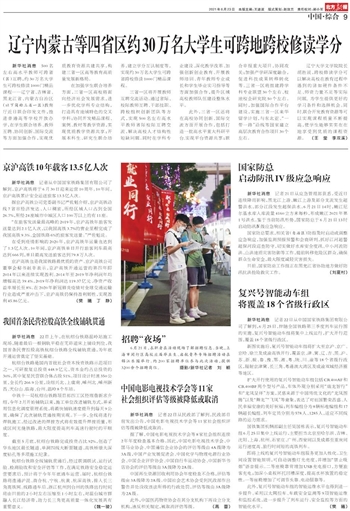 辽宁内蒙古等四省区 约30万名大学生 可跨地跨校修读学分